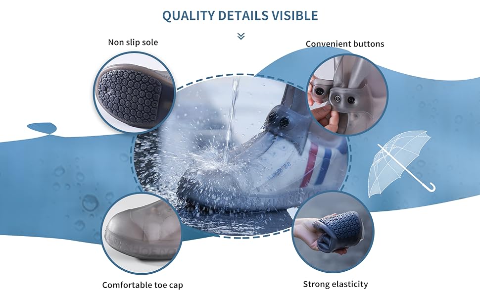 Flexible and stretchable silicone fits snugly over your footwear – no zippers or laces required. It also has 2 buttons to secure the cover tightly.